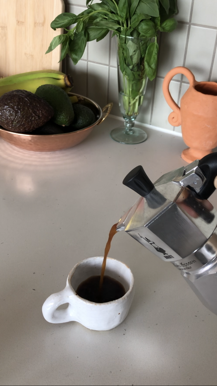 According to my Nonna, that’s with romantic music serenading while the espresso brews on the stovetop. Always warm the cup, serve with fresh biscotti, and in bed for the one you love.